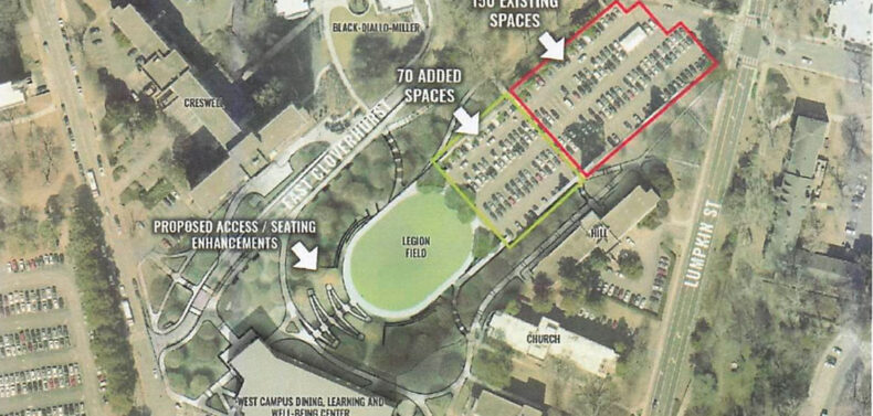 The UGA working group plans to enhance Legion Field “to create an expanded community green space and an outdoor amphitheater using the site’s natural topography,” according to UGA Today. It will also add 70 spaces to the parking lot.