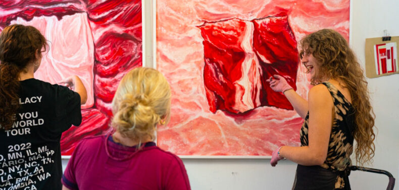 DODD GALLERIES (270 River Rd.) In the Lupin Gallery, “Mountain Tongue” by Aidan Koch reimagines her short story “Man Made Lake” as a hand-drawn wall work. Through Nov. 14. • In the Margie E. West Gallery, “The Body Politic” surveys two decades of work by Kristine Potter. Through Nov. 14. • In “NEOLOGISMS,” Ukraine-born artist slinko transforms a New York Times investigation into the disappearance of certain words from federal language in the Plaza Gallery. Through Nov. 14. • Located in the Suite Gallery, “Not Here/Not Now” is a group exhibition that explores speculative fiction. Through Nov. 14. • In the Bridge Gallery, Effy Wang’s “The Sweetest Meat in This Abattoir” features large-scale abstract paintings and hybrid sculptural forms. Opening reception Oct. 9, 5–7 p.m. Through Nov. 14.